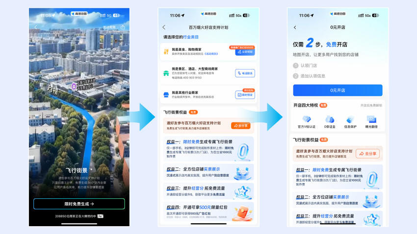 一夜之间就刷屏了,高德飞行街景上线24小时超20万商家报名。