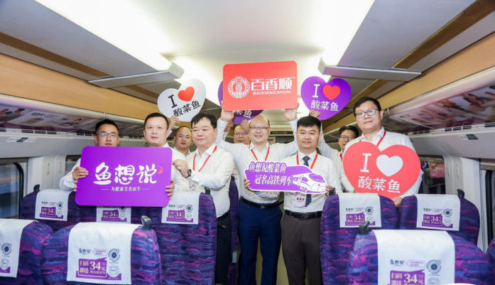 红餐网消息,10月16日,中国免浆黑鱼片开创者百香顺集团旗下品牌“鱼想说”与高铁携手合作,在上海南站开出首趟高铁冠名专列,开启全国化品牌传播新征程。此次“鱼想说”与高铁合作,是品牌与“国家名片”的品质共鸣——将以高铁速度送美味至千家万户,借高铁公信力传递健康理念,让“在家做酸菜鱼,选鱼想说”的认知覆盖全国,助力品牌拓展市场版图。