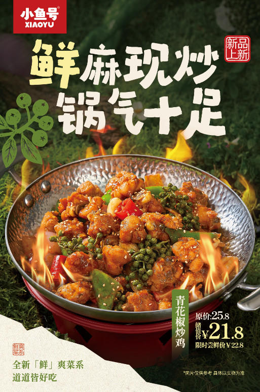 与此同时,年度力作 「青花椒炒鸡」 新品也同步登场。它以“鲜麻现炒、锅气十足”的风格,满足追求风味刺激与口感层次丰富的消费需求。一汤一炒,一鲜美一鲜麻,共同构成小鱼号2026年全新「鲜」爽菜系。