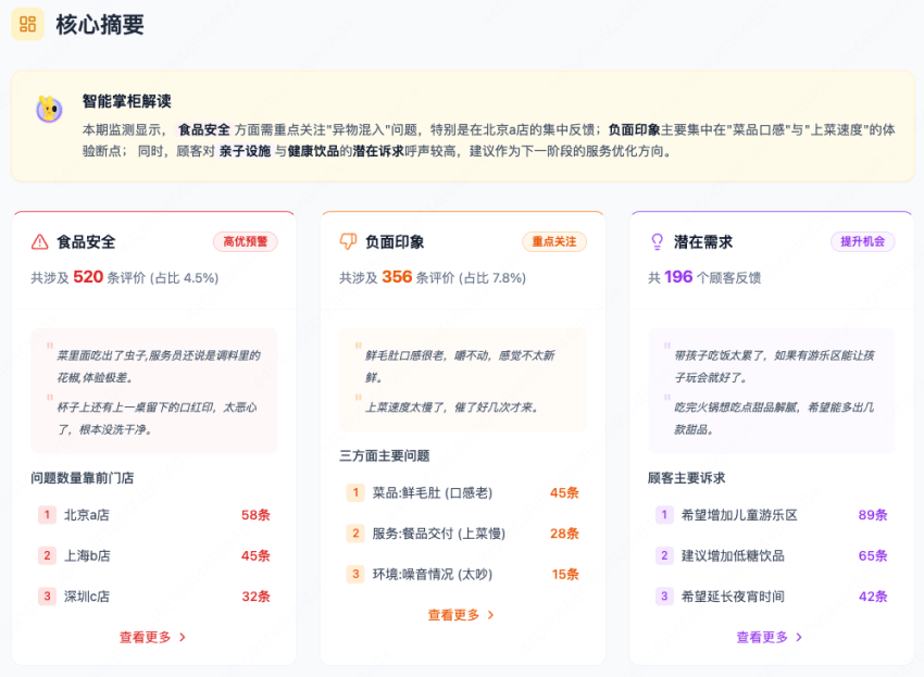 过去,连锁品牌想了解顾客评价,得靠人工或第三方一家店一家店地去筛、去统计,费时费力。