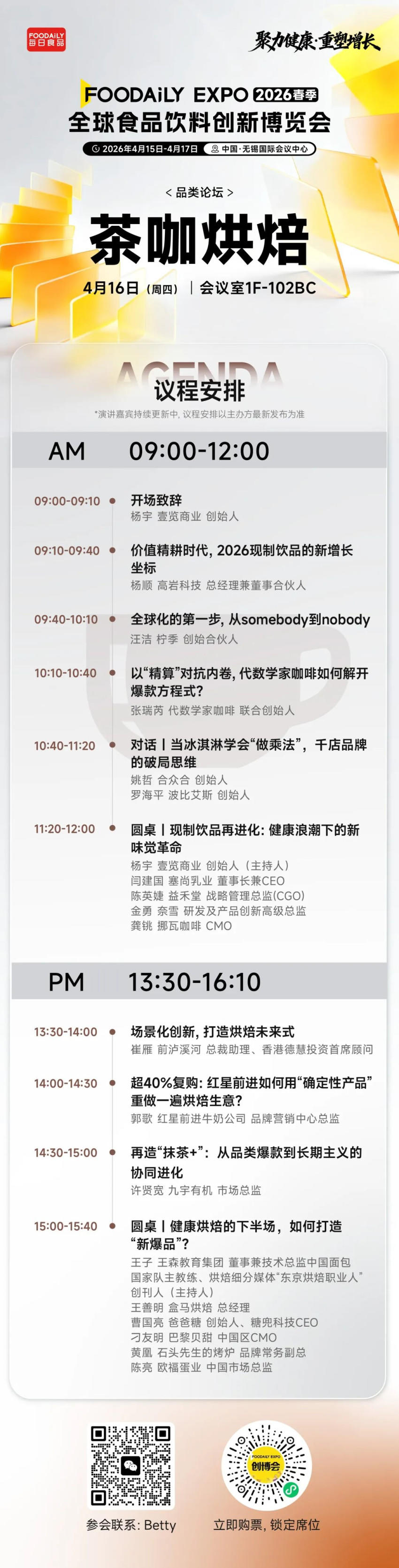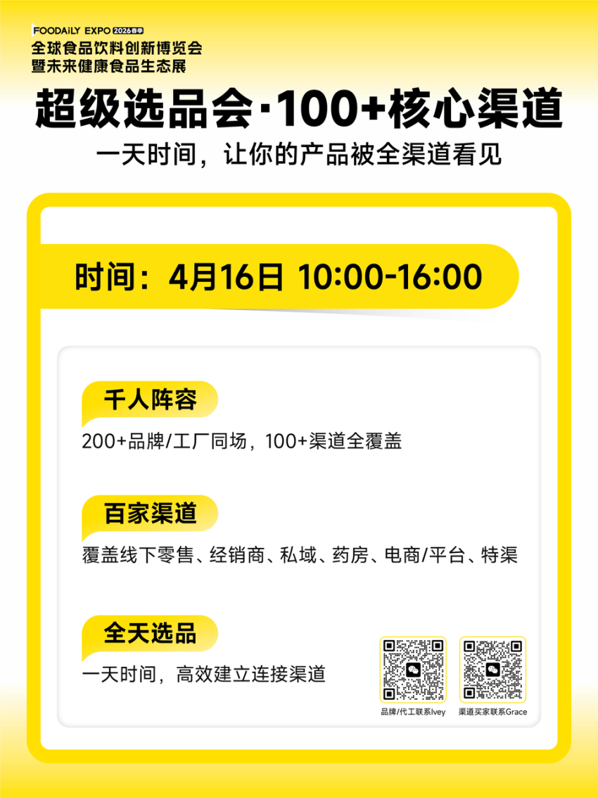 4月16日,仅三生物、永和豆浆、宾堡-曼可顿、富祥生物将在这里带来四场重磅发布,这里汇聚行业前沿趋势与创新力量,为优质品牌搭建专业发声舞台,让好产品被看见、被记住、被选择。以精准流量与行业声量,为品牌新品打开从首发到热销的快速通道。