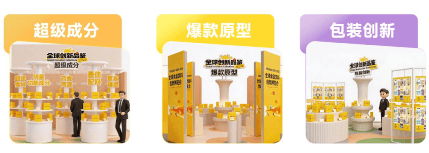 联动食饮行业明星IP“全球创新品鉴”,在展区倾力打造「超级成分、爆款原型、包装创新」三大主题区,为产品人提供创新落地的「原料 - 原型 - 包装」全链路资源。