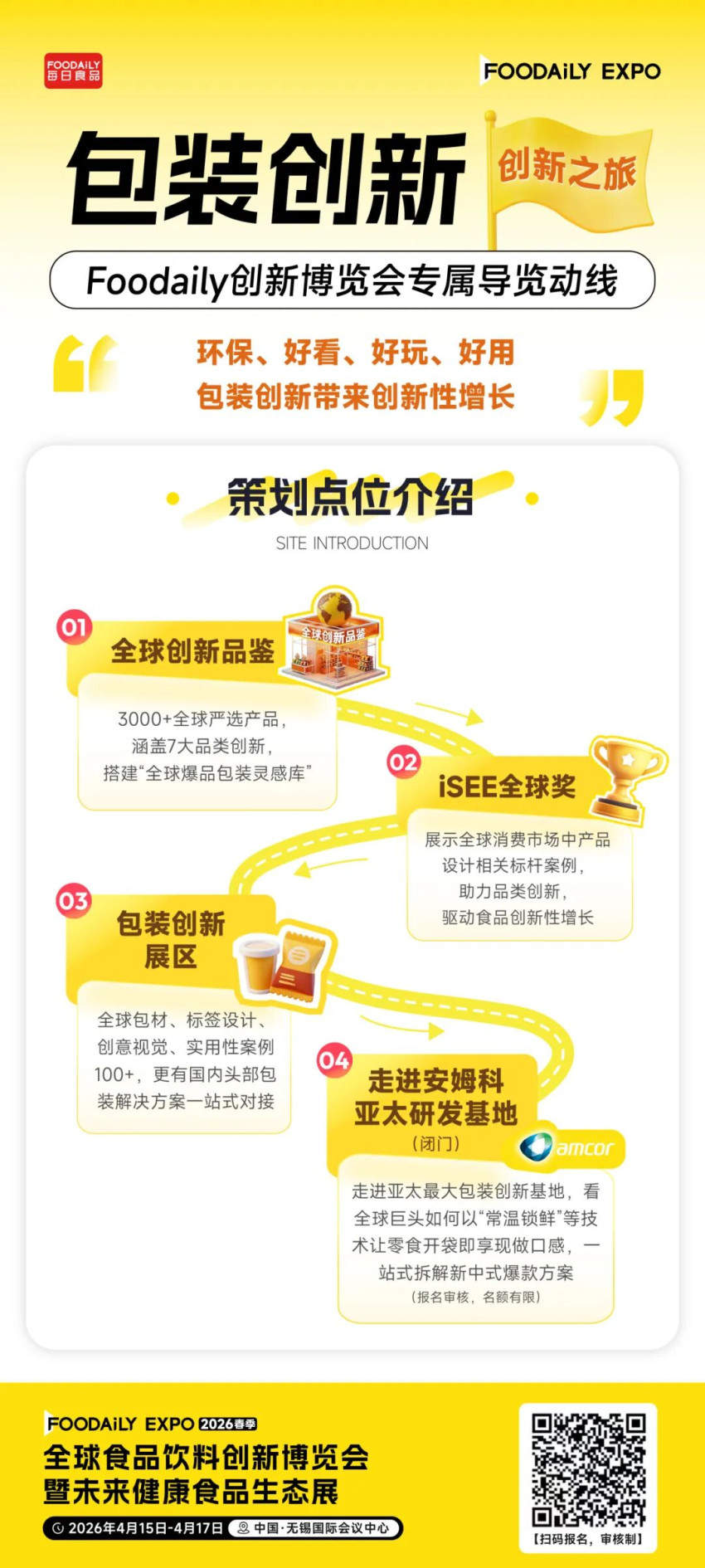 我们还携手全球包装巨头安姆科,特别策划了走进亚太最大包装创新基地-安姆科亚太研发中心实地参访创新之旅,带你探秘真正驱动产品创新的底层技术能力,共同体验从趋势灵感到落地共创零食爆款方案的全过程。