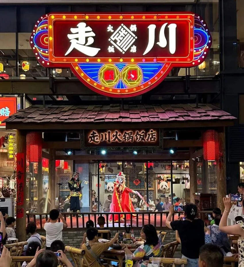 成都的走川火锅饭店,一站式打卡火锅+成都小吃+表演,有功夫茶表演、非遗演出(蜀绣)、变脸等,不仅吸引了外地游客,连很多当地人也前来捧场。