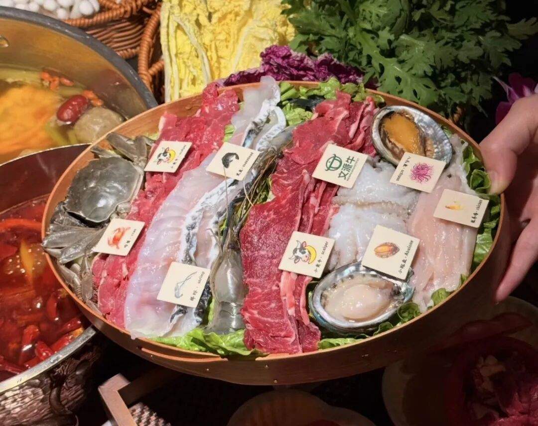 火锅店的产品是锅底和菜品,但体验可以无限延伸。比如,来自宁波的文派牛鲜牛肉火锅,海鲜牛肉拼盘在社交平台上出了圈,各种牛肉和海鲜的堆砌,价值感满满,一个拼盘能品尝到十多种新鲜产品。