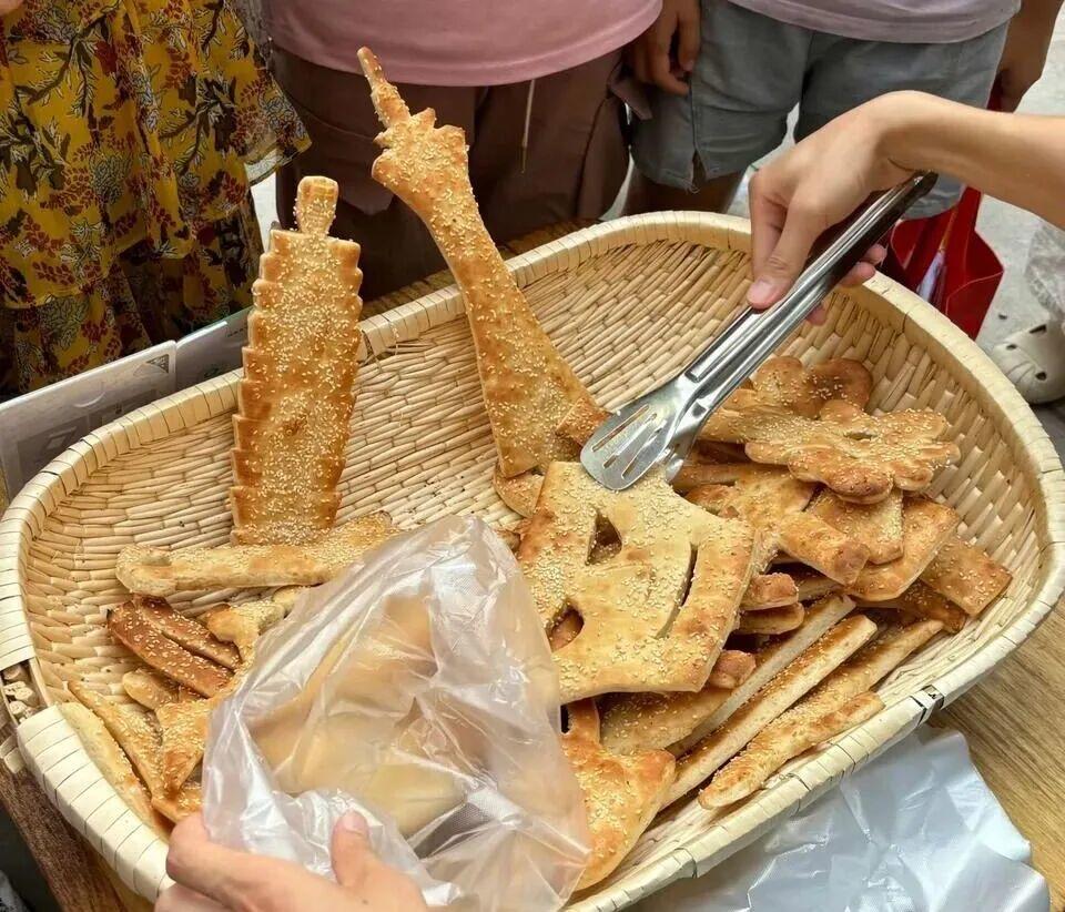 摊主把烧饼做成各种新奇造型,好比“沙漠之鹰”“非洲之心”“AUG”这类游戏中的武器式样,每个只卖一元,还能按顾客喜好定制。摊位一开张,就吸引不少“小孩哥”围上来选购。