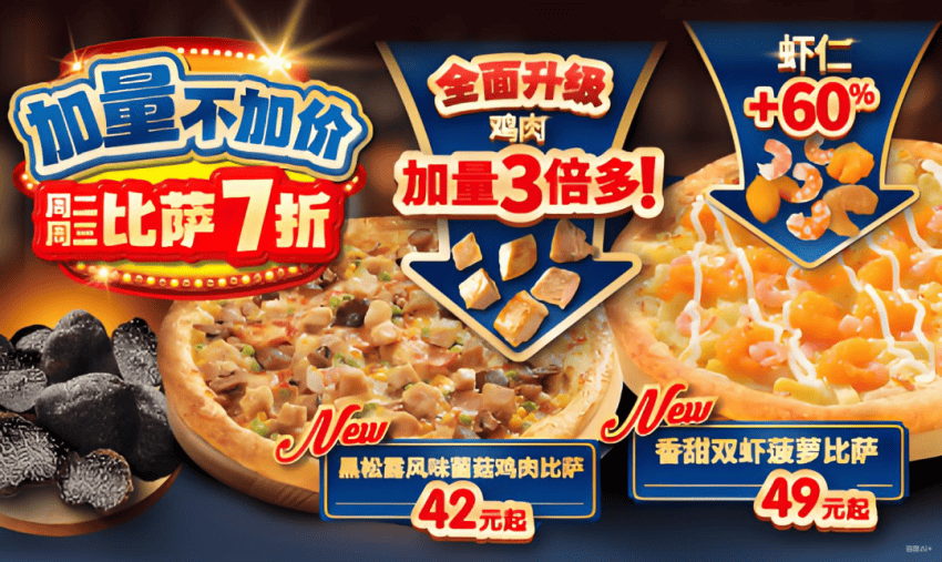 作为一种舶来品,比萨在中国也进行了本土化改造和创新。以达美乐中国为例,根据达美乐家族在其他地区的产品灵感,外加本地市场调研,不断推出“物超所值”的产品,如人气招牌金沙咸蛋黄嫩鸡比萨、小龙虾酥香嫩鸡比萨等。