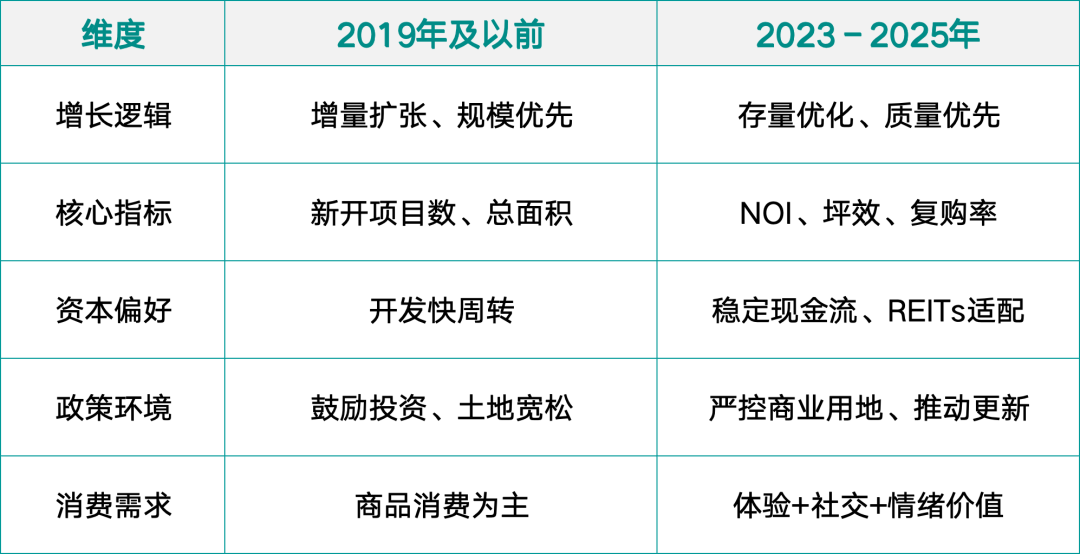这些动作具有象征意义,意味着商业已经从追求数量增加(增量)转向追求质量提高(存量)的阶段了。商业增量的放缓不是周期性回调,而是发展阶段的质变。它标志着中国商业地产正式告别“野蛮生长期”,进入“精耕细作期”。未来的竞争,不在谁建得更多,而在谁运营得更好。