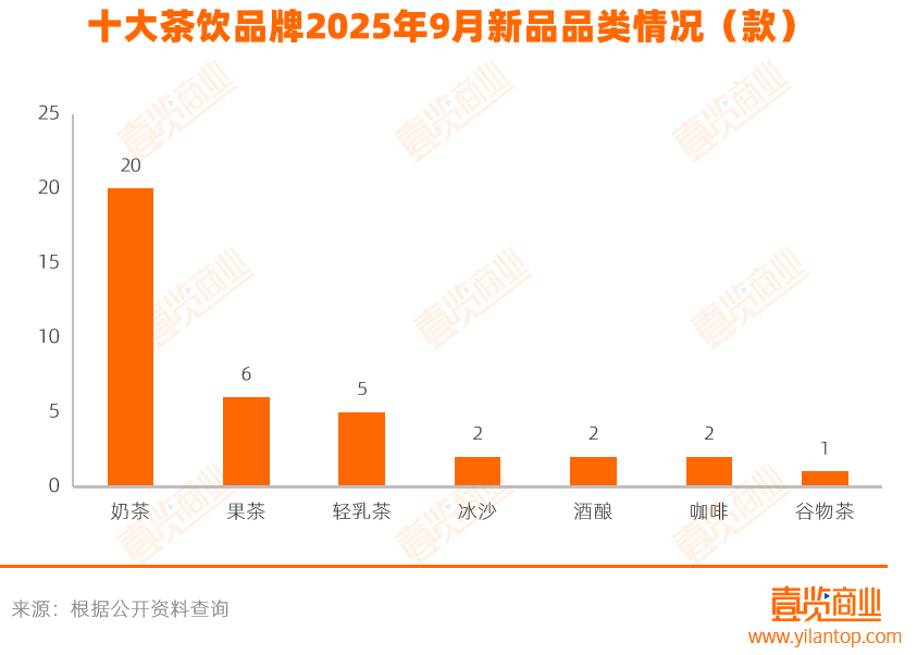 在茶饮赛道,热饮属性更强的奶茶品类迎来了爆发式增长。9月共推出21款奶茶新品,占新品总数的52.6%,成为绝对的主导;果茶与轻乳茶则分别上新6款和5款,各自占比15.7%与13.1%。这与8月仅有6款奶茶新品,占比14.6%的情况,形成鲜明对比,显示出品牌策略随季节变化已作出明显调整。