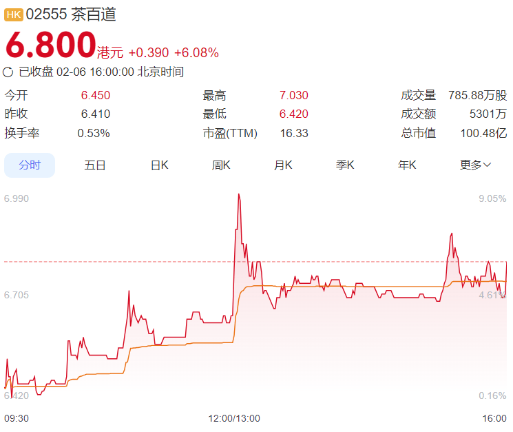 与一线疲于奔命形成鲜明对比的,是资本市场的热烈反响。2月6日午后,港股茶饮板块集体走强。
