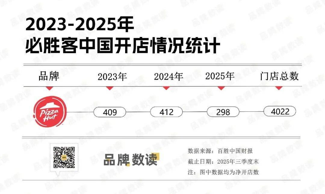 近日,必胜客宣布在华门店数突破4000家。事实上,这一里程碑的达成比官宣来得更早,据百胜中国2025年第三季度财报显示,截至9月底,必胜客门店总数已达4022家。