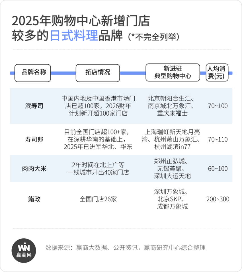 【雍容荟】从成都起家,人均600元的价格,直播间579元的秒杀价上架即被秒空,排队现场“堪比菜市场”,2025年加速进驻高端商场,开华中首店、华南首店、杭州首店;【新極膳】主打现切蓝鳍金枪鱼、松叶蟹等高端海鲜,集刺身、铁板烧、怀石料理于一体,人均300元左右,在武汉、重庆已开20+门店。