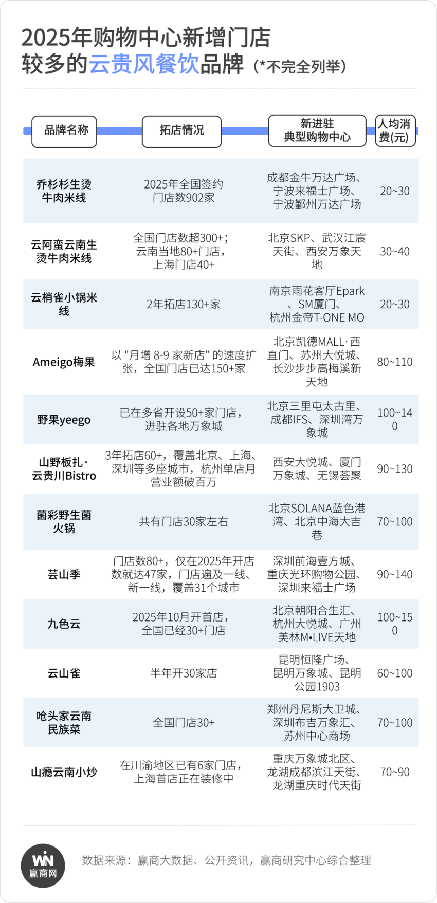 从“国民级快乐碳水”云南米线,到主打情绪价值的山野bistro,再到菌菇火锅、酸汤火锅、云南小炒、贵州烙锅……各类云贵餐饮业态密集涌现,甚至出现“一Mall多店”的激烈竞争格局。