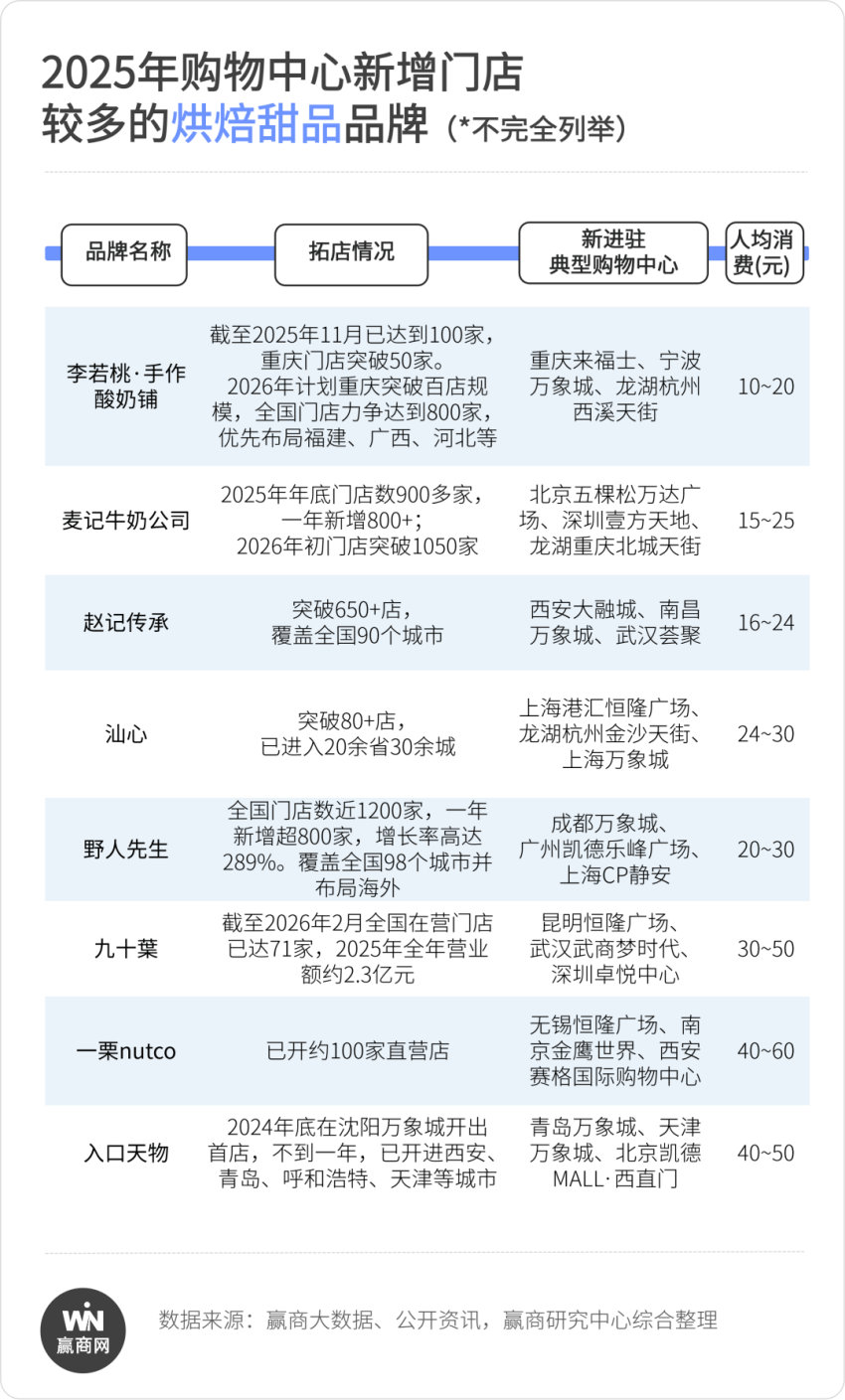 据赢商大数据,2025年500+优质商场内,烘焙甜品新开店1600多家,新关店1300多家,门店规模稳步扩张。