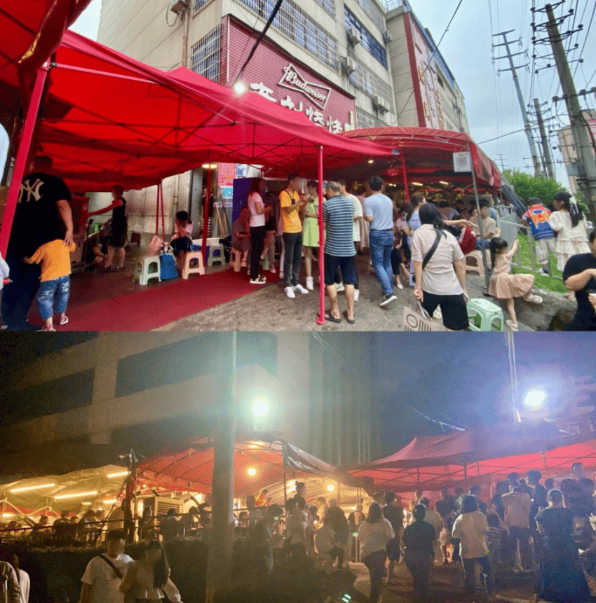 也得益于多重身份积累起来的人脉资源,让老刘烧烤刚开业就成了当地的网红店。对于流量带来的优势,尹向平直言不讳:“当时只有十来张桌子,导致经常坐满,排队的现象经过网络平台一传播,自然就会有更多人想来尝尝。”