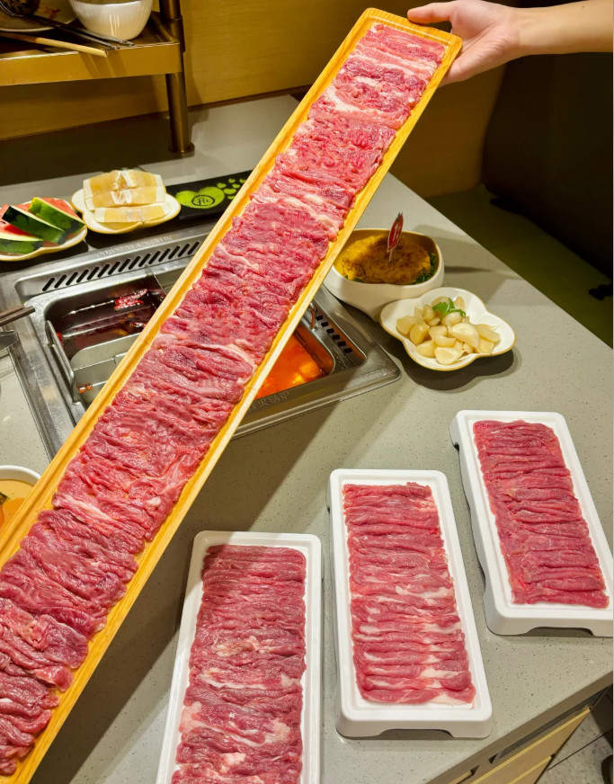 比如海底捞,近期便在北京、哈尔滨、长春、沈阳的部分门店,推出冬季限定鲜切羊肉。据介绍,该产品精选呼伦贝尔小羔羊为原料,到店仅售24小时,不仅包含前腿、后腿、羊脊三个部位的羊肉,还采用一米长盘的形式呈现,售价108元。在社交平台,该产品凭借优质新鲜食材与特色装盘获得不少网友好评,“一米长盘羔羊肉,真的超满足”“羊肉吃到爽”“羊肉超新鲜”。