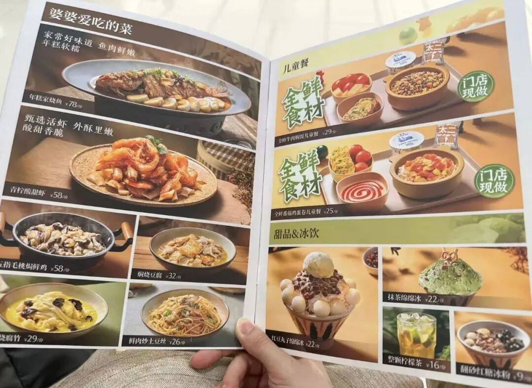 围绕这五大核心食材,品牌共推出12道主打菜品,约占总SKU(约40种)的30%。其余产品则涵盖家常菜、滋味汤品、特色小吃、“婆婆爱吃的菜”、儿童餐、主食及饮料甜品等,丰富度显著提升。