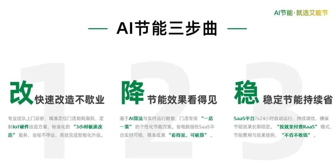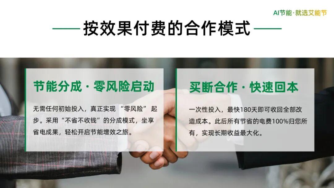 “客户的电费没降,我们一分不收。”这是艾能节在商业模式上给出的合作承诺,也是方案能够迅速落地执行的一大原因。