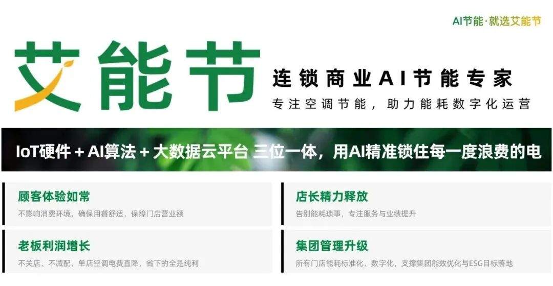 面对这一系列行业级难题,市场也开始催生更智能的解决方案。专注于该领域的节能企业“艾能节”,其推出的AI空调节能方案,正成为一批头部餐企破局的关键。
