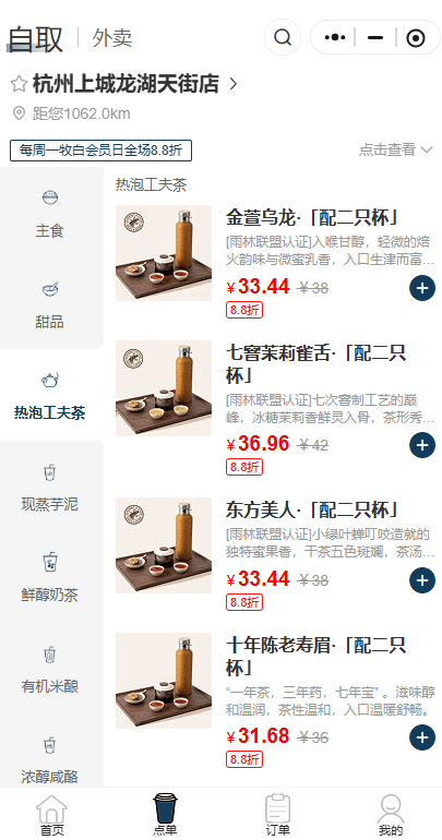 为了进一步提升消费体验,牧白手作茶肆店对饮品线也进行了升级,引入了6款定价在36元至42元一壶的热泡功夫茶,品类涵盖金萱乌龙、七窖茉莉雀舌、东方美人、十年陈老寿眉、正山小种、特级白牡丹。
