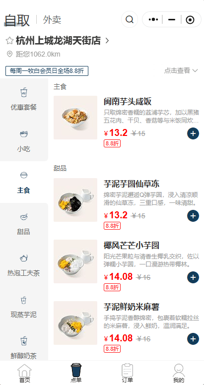 另据官方小程序,当前该茶肆店还针对主食产品推出了两款咸饭组合套餐:24.8元起的“1+1”随心配套餐,包含咸饭1份与自选饮品一杯;34.8元起的“1+2”随心配套餐,则涵盖咸饭1份、自选小食1份与甜品1份。