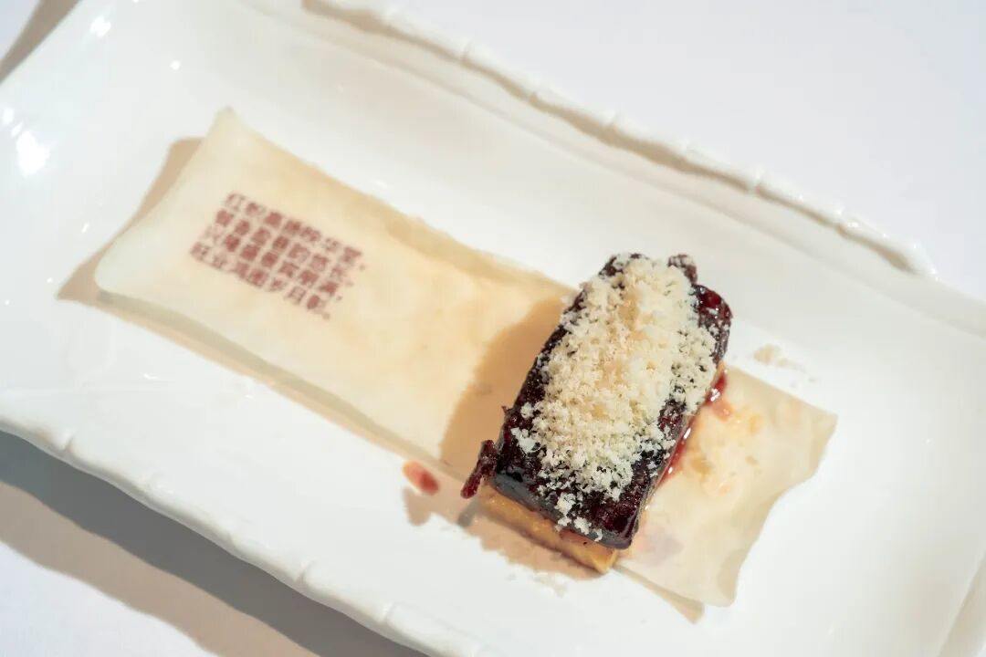 精选肉质脂肪分布均匀的雪花和牛,处理后在表面裹覆一层秘制酥壳脆皮,与烤至焦糖化的菠萝片搭配呈现。入口时外皮的酥脆、牛肉的软嫩与菠萝的甜酸依次展现,脂香与果香交融,解腻可口,层次鲜明。