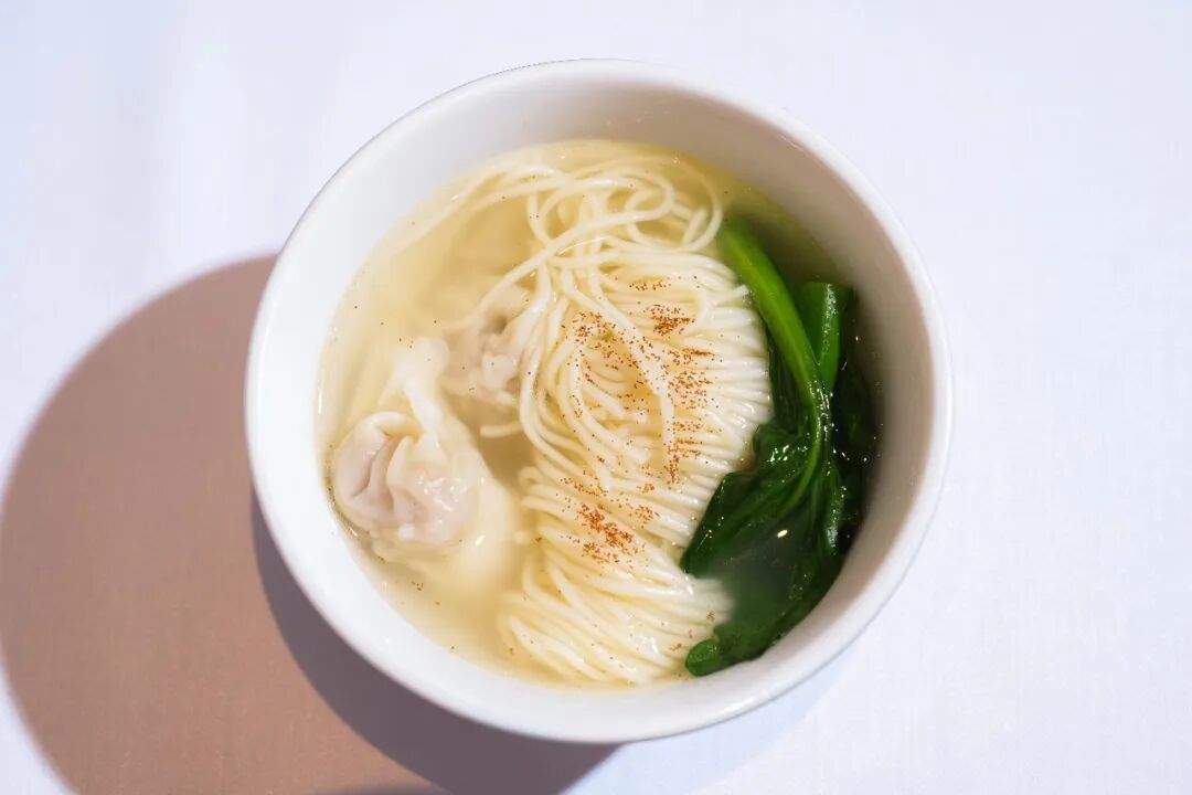 云吞内馅饱满,包裹新鲜虾肉与颗粒分明、色泽红润的虾籽,鲜味浓郁。云吞皮薄馅足,咬开后虾籽在口中带来细微的爆破感,与虾肉的脆甜相辅相成,咸鲜柔和。