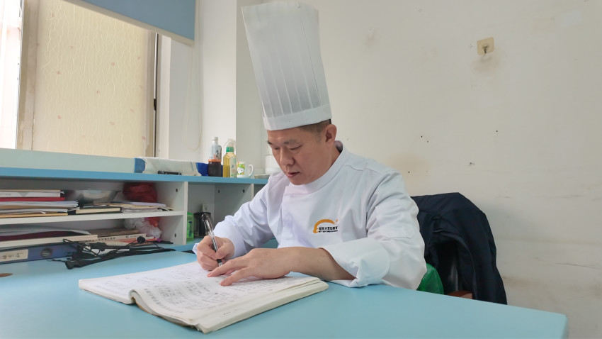 当然,他也有所有教师共同的烦恼:现在的小孩爱看手机,上课容易打瞌睡,死板地念“飞水拉油”肯定没人听。他不得不想些办法,比如提到山药要说有什么功效,尽量调动他们对做菜的兴趣。