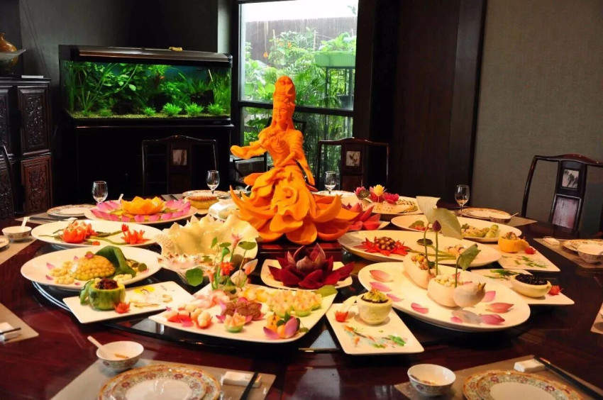 赵友铭也曾独创了许多造型精巧、创意十足的素食佳肴,如竹报平安、梅花海参、荷花珍珠等。另外,他还积极研发西餐素食,推出过奶油松露汤等菜品。