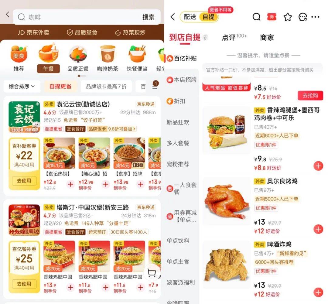 “它和外卖用同一套优惠系统,外卖能用的红包,自提也可以用,只是自取和外卖到家的区别。”张文波认为,京东自提的差异化优势在于流畅的产品体验,也对消费者更加友好。