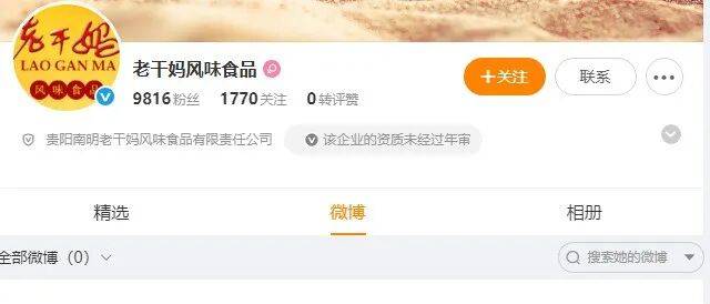 红餐供应链指南还注意到,老干妈多个社交媒体账号已长期停更:官博显示资质未通过年审,无内容显示;抖音账号“老干妈官方旗舰店”,也已停更近一年;企业官方微信的更新也还停留于2022年3月。