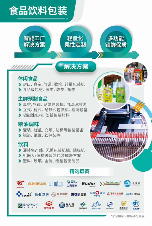 本届展会深度聚焦食品饮料核心领域,针对不同细分场景,呈现从生产线到终端的完整包装解决方案: