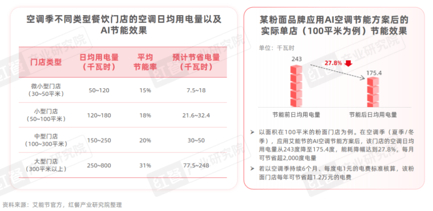 3.AI空调节能助力粉面品牌单店能耗降低约三成,门店数量在百家以上的连锁品牌年度节能收益可达百万元