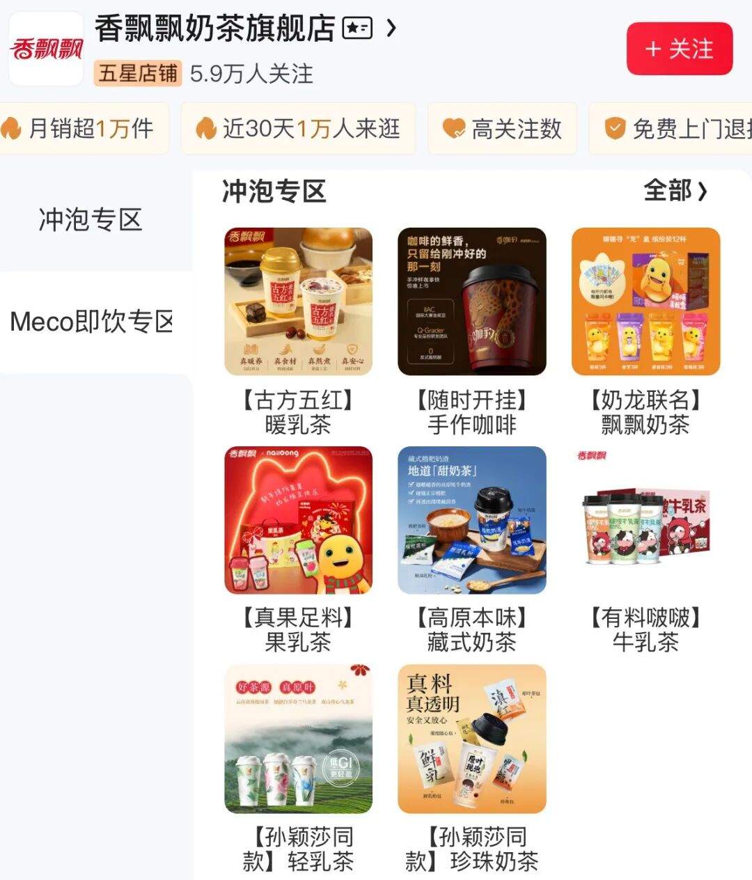 2017年,香飘飘推出Meco牛乳茶,开始正式布局即饮业务。而后数年,即饮业务的产品线逐渐铺开,形成了Meco如鲜、兰芳园等品牌,并逐渐发展出了果茶、冻柠茶、鸳鸯奶茶等多样产品。