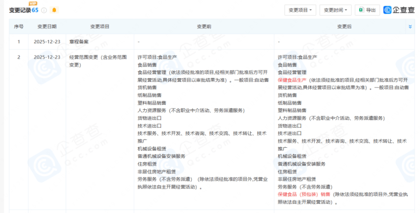 此外,去年底,香飘飘对经营范围进行变更,新增“保健食品生产”及“保健食品(预包装)销售”两项业务。这意味着,香飘飘或将跨界涉足保健食品行业。