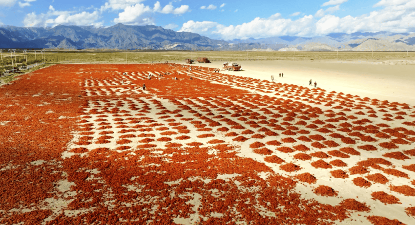 截至2025年,焉耆盆地的辣椒种植面积已经扩到了两万亩。