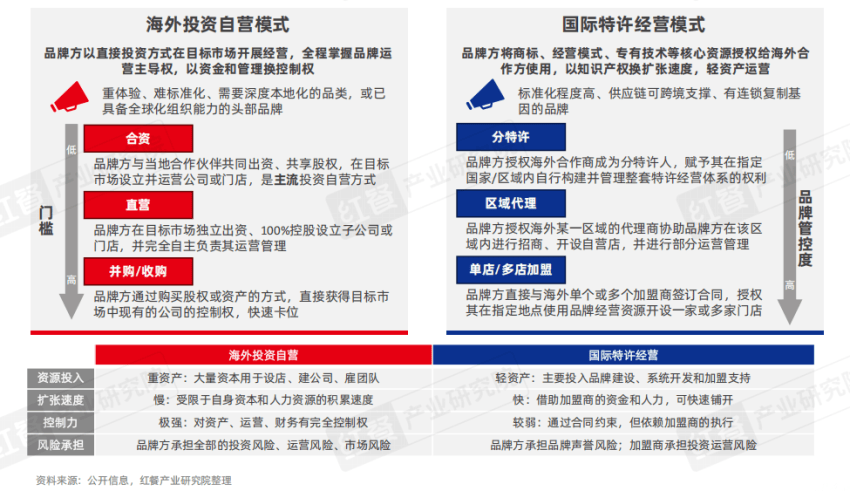 从出海模式上看,中国餐饮品牌出海正从产品出海升级为体系出海。随着中国餐饮品牌海外布局逐步扩大,出海模式正在从早期依赖单店产品复制进入不同市场的产品出海模式,逐步转向依托供应链、运营体系与商业模式的本地化复制,实现规模化扩张,实现从“开一家店”到“运营一个市场”的跨越。