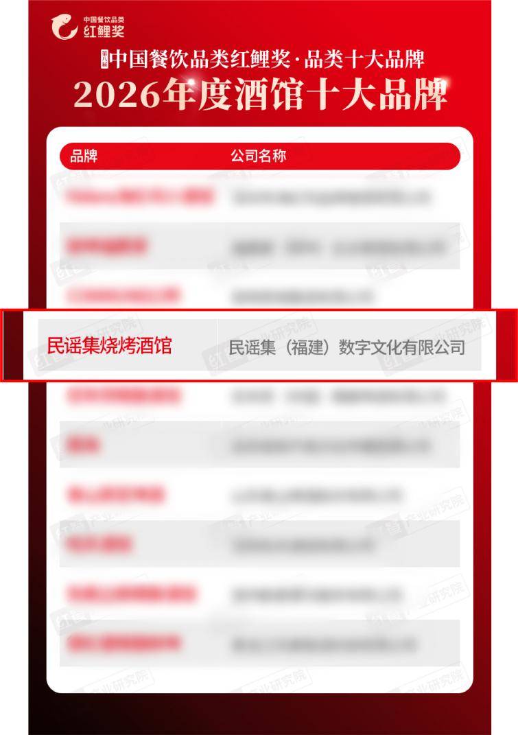 近日,“第八届中国餐饮品牌红鲤奖·品类十大品牌”评选结果正式揭晓。在备受关注的“2026年度酒馆十大品牌”榜单中,一个以“烧烤+酒馆+音乐”为核心模式的品牌——民谣集,赫然在列。