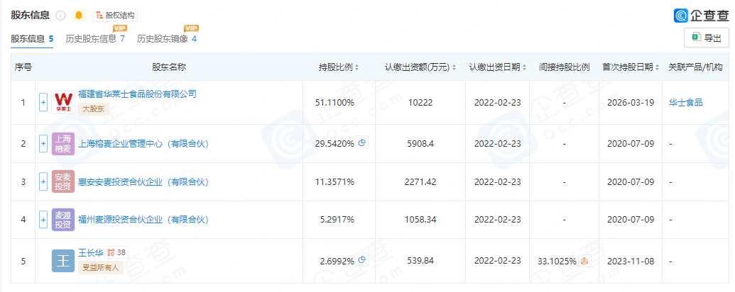 值得一提的是,企查查信息显示,目前福建省华莱士食品股份有限公司已经是福建麦王食品有限公司的最大股东,持股比例达到51.1%。