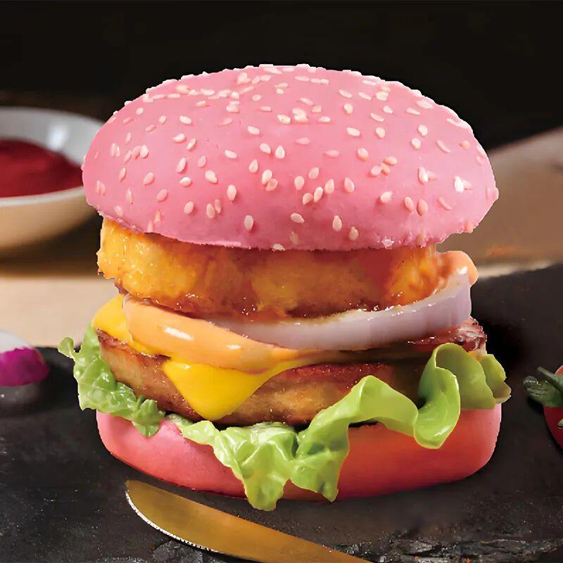 其中,汉堡胚系列涵盖火龙果酵素面包、印花汉堡面包、现烤汉堡面包、墨鱼汁汉堡面包、升级汉堡面包等多款产品,既为连锁餐厅打造特色汉堡产品提供多样选择,同时,还提供产品定制服务,满足不同客户的个性化需求。