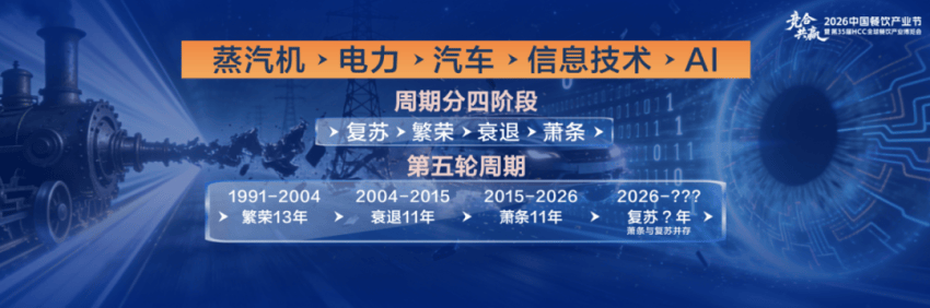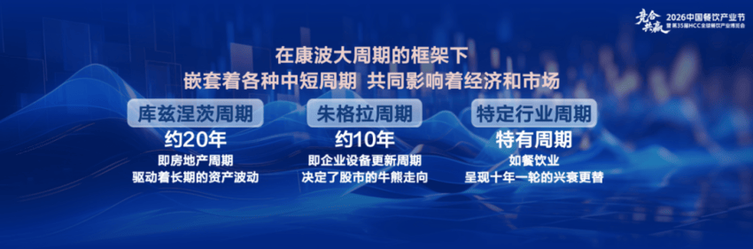 还有特定行业周期,每个行业都有不同的周期规律,比如餐饮行业火爆十年周期。根据理论推演,现在(2023-2026)处于康波的萧条阶段,典型特征就是低增长、高通缩存量博弈,即企业赚的钱不再是经济增长带来的溢价,而是从别人兜里掏出来的。这个时代的竞争会比以往任何时候都更血腥,此时餐饮行业扩张开店80%会亏,大批企业倒闭。