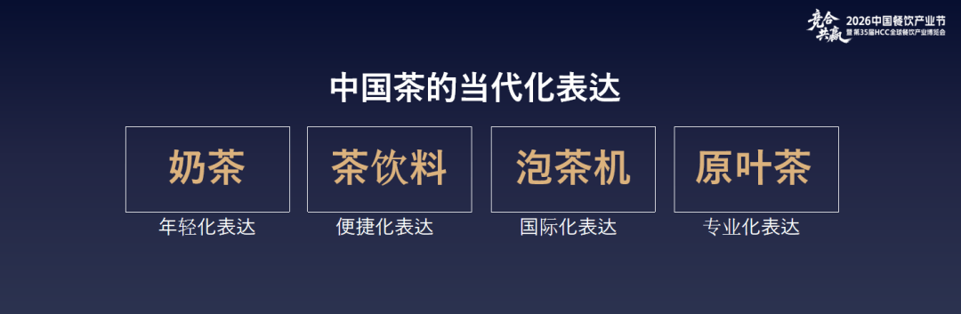 总结而言,中国茶的当代化表达有四杯茶,第一杯是奶茶,是年轻化的表达。第二杯茶是茶饮料,是中国茶的便捷化表达,随时随地均可享用一瓶。第三杯是泡茶机,是中国茶的国际化表达,无论你身处哪个国家,用泡茶机就可以喝上一杯地道的中国茶。第四杯茶是原叶茶,将传统表达演变为专业化表达,适合年龄偏大、对茶极度热爱的人群。