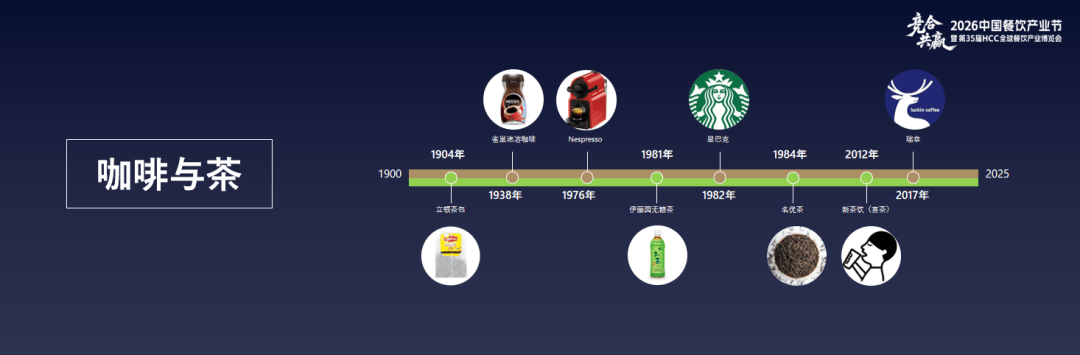 接下来探讨茶与咖啡,主要回顾过去近百年全球茶和咖啡发生了哪些变化,对餐饮行业具有何种启示意义,以及未来茶和咖啡如何更好地融入餐饮场景。