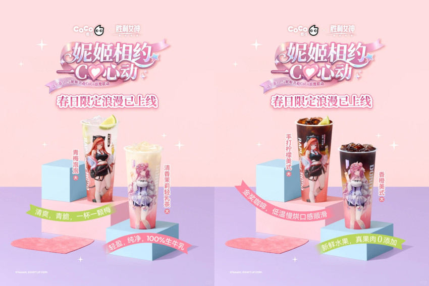 4 月 24 日,CoCo 都可正式官宣与热门手游《胜利女神:新的希望》开启跨界联名活动,以“妮姬相约 一Co心动”为主题,以联名饮品、定制周边及线下沉浸式体验,为年轻消费者与游戏玩家带来一场跨越次元的心动约会。