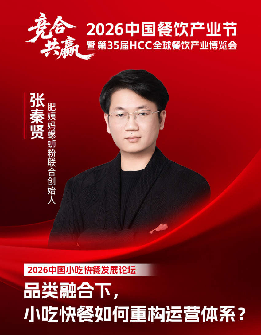 目前,肥姨妈螺蛳粉联合创始人张秦贤确认出席2026中国小吃快餐发展论坛,届时将在圆桌对话环节,就“品类融合下,小吃快餐如何重构运营体系?”议题,与餐饮品牌创始人及产业上下游领军人物,共研行业发展新路径,为餐饮产业高质量发展凝聚新动能。