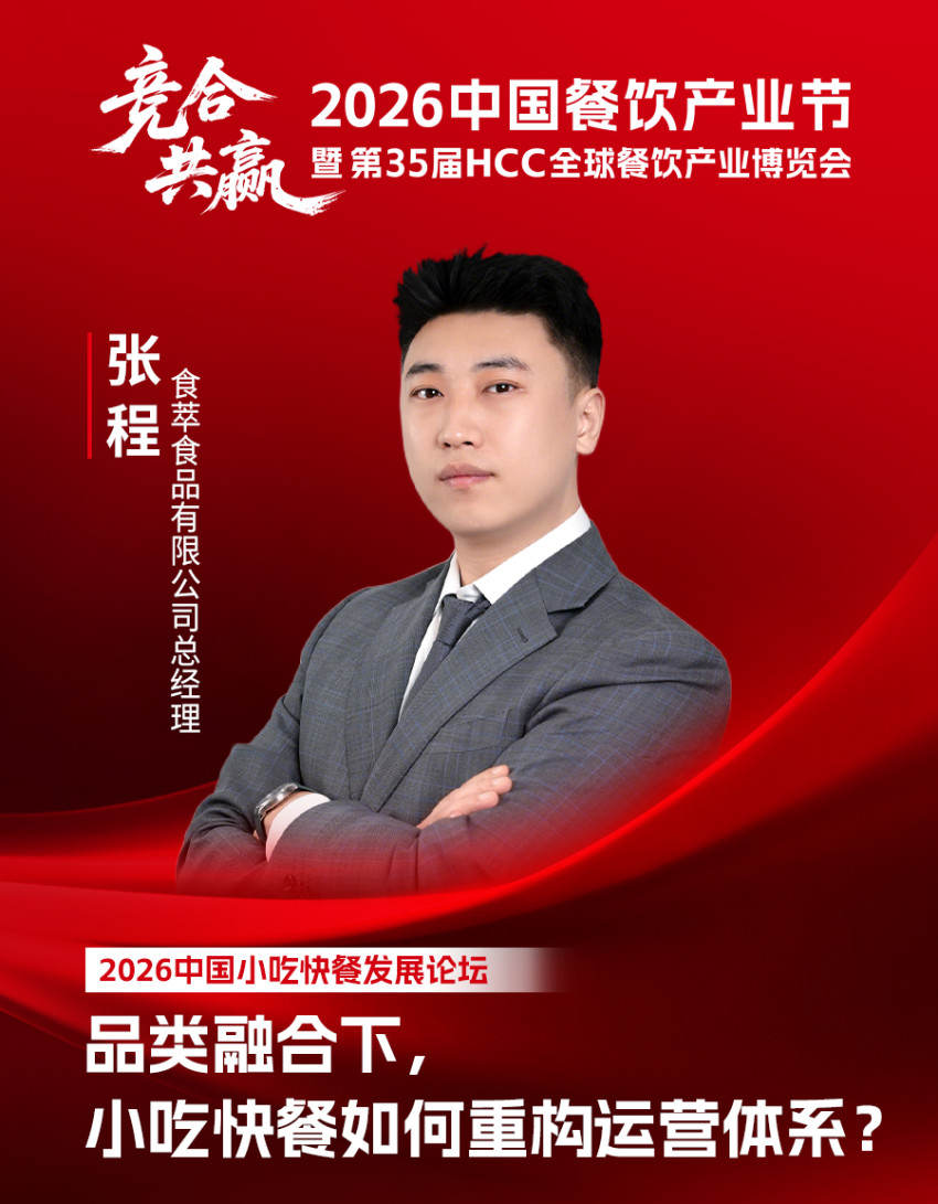 目前,食萃食品有限公司总经理张程确认出席2026中国小吃快餐发展论坛,届时将在圆桌对话环节,就“品类融合下,小吃快餐如何重构运营体系?”议题,与餐饮品牌创始人及产业上下游领军人物,共研行业发展新路径,为餐饮产业高质量发展凝聚新动能。