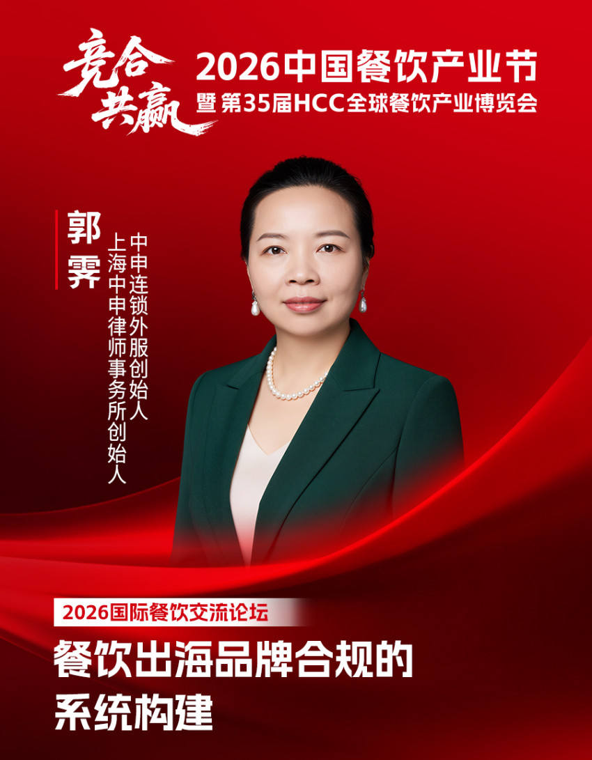目前,上海中申律师事务所创始人、中申连锁外服创始人郭霁确认出席2026国际餐饮交流论坛,届时将登台发表主题为“餐饮出海品牌合规的系统构建”的独立演讲,与餐饮品牌创始人及产业上下游领军人物,共探新时代中国餐饮产业高质量发展新路径。