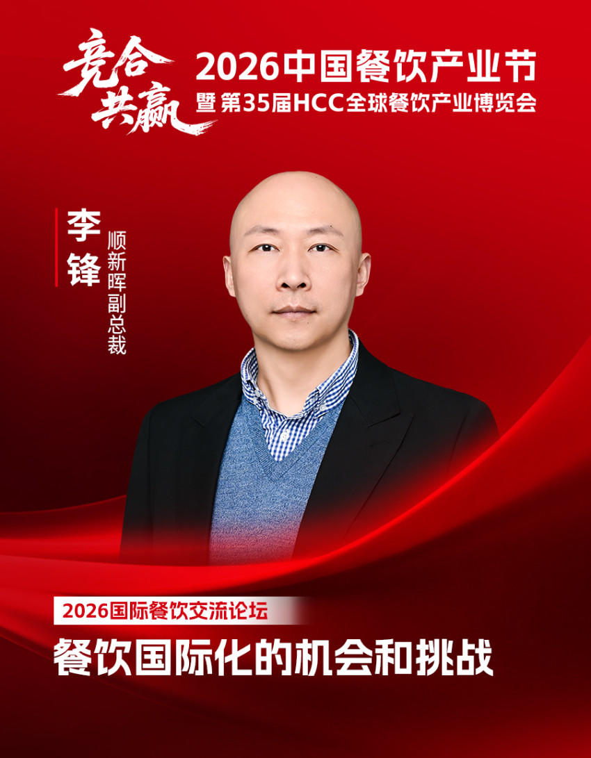 目前,顺新晖副总裁李锋确认出席2026国际餐饮交流论坛,届时将在圆桌对话环节,就“餐饮国际化的机会和挑战”议题,与餐饮品牌创始人及产业上下游领军人物,共研行业发展新路径,为餐饮产业高质量发展凝聚新动能。