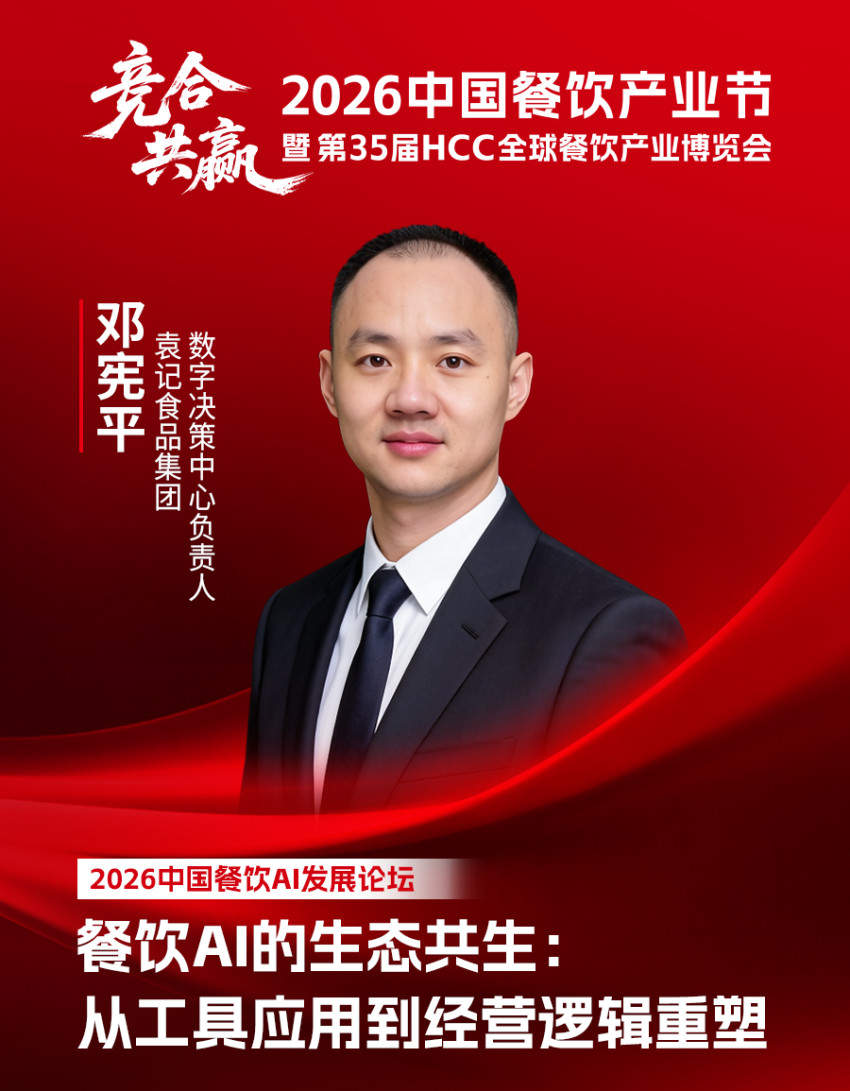 目前,袁记食品集团数字决策中心负责人邓宪平确认出席2026中国餐饮AI发展论坛,届时将在圆桌对话环节,就“餐饮 AI 的生态共生:从工具应用到经营逻辑重塑”议题,与餐饮品牌创始人及产业上下游领军人物,共研行业发展新路径,为餐饮产业高质量发展凝聚新动能。