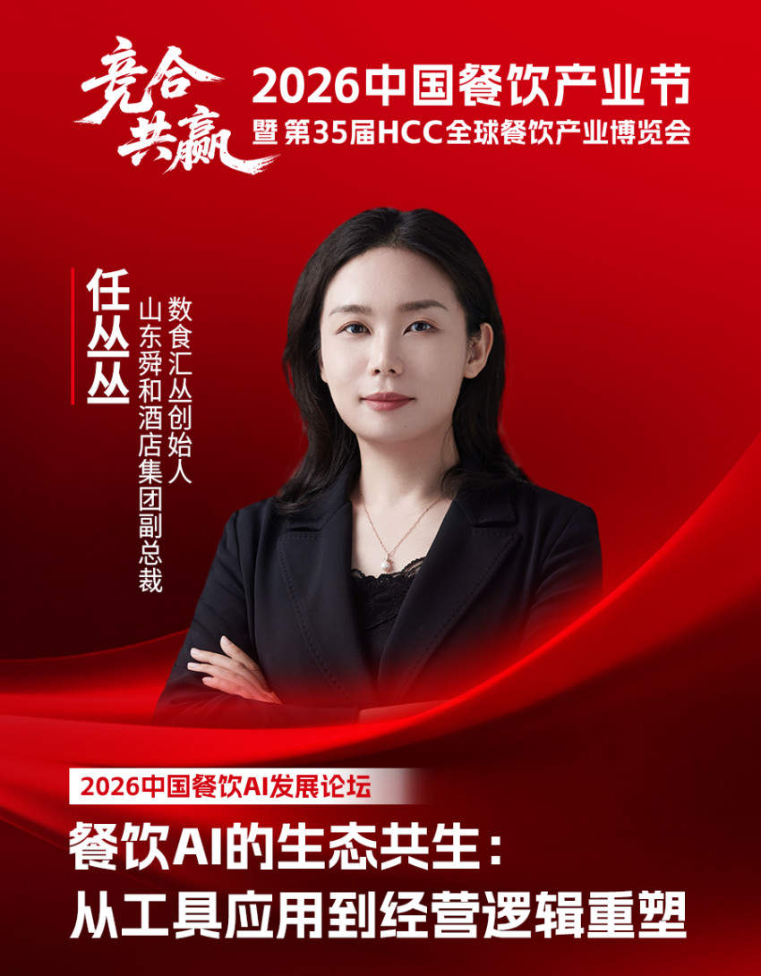 目前,山东舜和酒店集团副总裁&数食汇丛创始人任丛丛确认出席2026中国餐饮AI发展论坛,届时将在圆桌对话环节,就“餐饮 AI 的生态共生:从工具应用到经营逻辑重塑”议题,与餐饮品牌创始人及产业上下游领军人物,共研行业发展新路径,为餐饮产业高质量发展凝聚新动能。